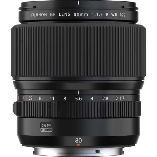 Distinguished by its impressive speed, the FUJIFILM GF 80mm f/1.7 R WR is a short portrait-length prime for the G-mount GFX mirrorless medium format system. The bright f/1.7 maximum aperture excels in low-light conditions and also benefits depth of field control for precise selective focus applications. Optically, the lens uses a pair of low dispersion elements and one aspherical element, which correct a variety of aberrations and help to achieve high sharpness and clarity. Despite its fast design, this lens is relatively compact and lightweight for handheld use and sports a dust and weather-sealed design for working in trying conditions.