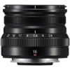 Continuing FUJIFILM’s series of compact, portable primes, the black XF 16mm f/2.8 R WR is a 24mm-equivalent wide-angle lens, well-suited to landscape, nature, and architectural shooting. Its f/2.8 maximum aperture balances size and speed, and is suitable for working in available lighting conditions while also limiting the overall size and weight of the lens for everyday use. The optical design features two aspherical elements to reduce distortion and spherical aberrations in order to produce greater sharpness and accurate rendering. A Super EBC coating is also used to control flare and ghosting for improved contrast and color fidelity when working in bright and backlit conditions. Complementing the optics is a stepping motor, along with an internal focusing design, which provides quick and especially quiet focusing performance. Additionally, the lens is weather-sealed to suit working in inclement conditions.